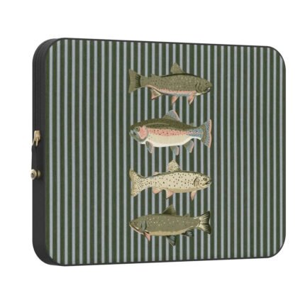With vintage fish illustrations layered over muted green stripes, Best Catch gives your laptop a refined edge. Inspired by heritage