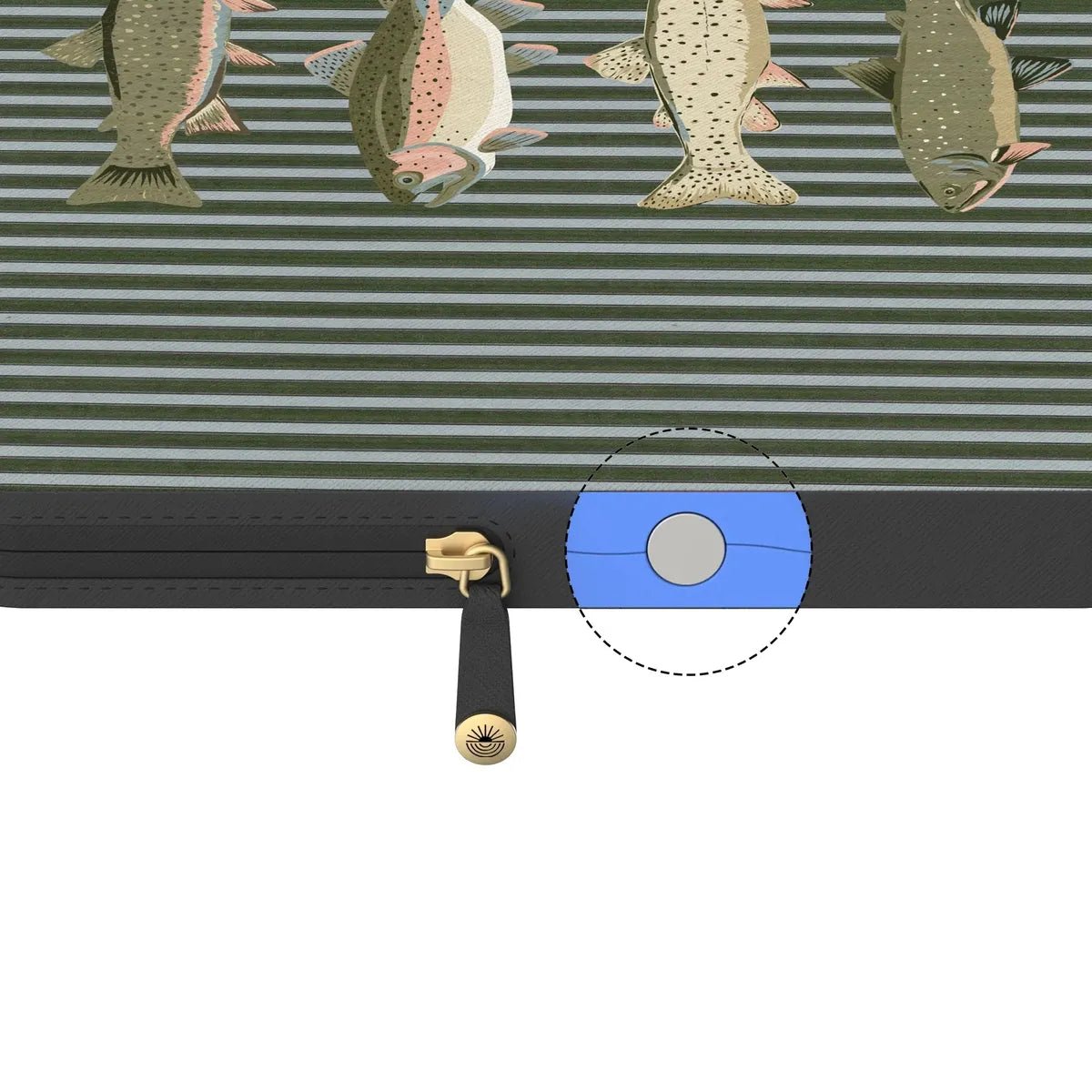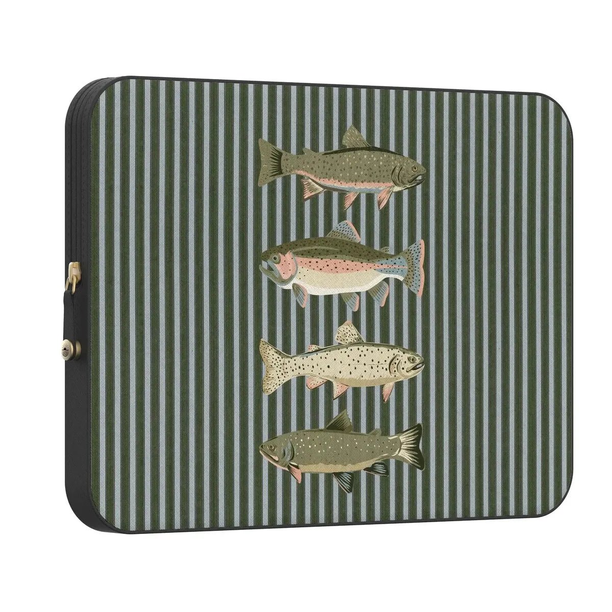 With vintage fish illustrations layered over muted green stripes, Best Catch gives your laptop a refined edge. Inspired by heritage maritime graphics, this design feels collected rather than trendy. Bold in detail but balanced in tone, it’s made for anyone who appreciates subtle statement pieces. The protective build helps shield your laptop from scratches and daily wear while maintaining a clean, structured profile. A striped fish laptop case with modern durability.